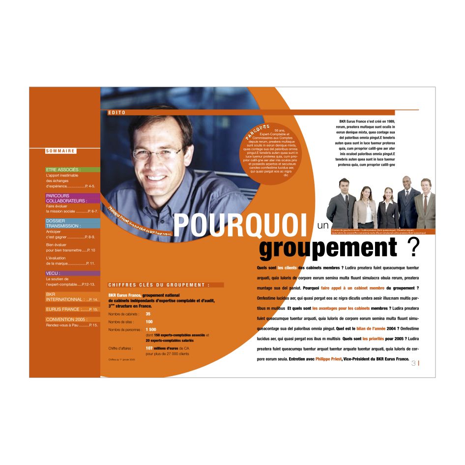 Trois approches conceptuelles pour illustrer ce projet de magazine dédié à la symbiose des membres de ce réseau. A travers ces projets, je présente différents axes graphiques révélant la singularité de l’entreprise pour montrer les champs d’approche possibles. Sur ces exemples, réflexion sur les positionnements, sur les partis pris créatifs, les découpages du magazine, et ce avec des textes fournis par ce client spécifique.