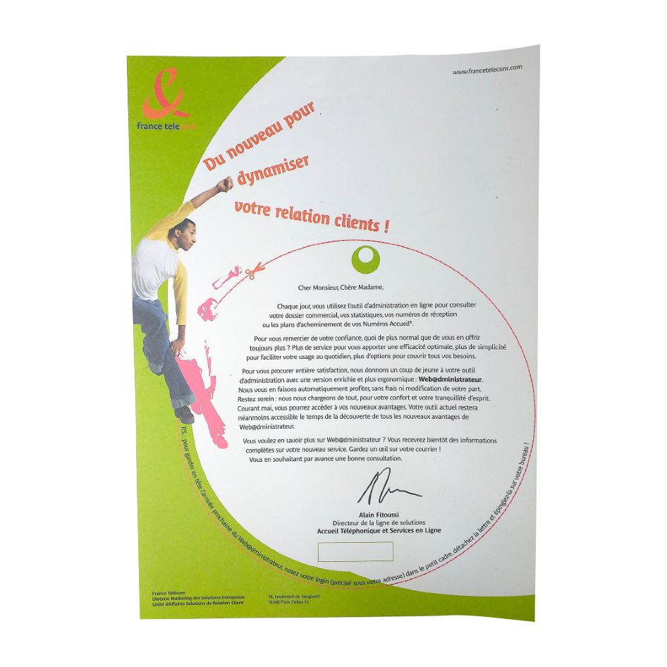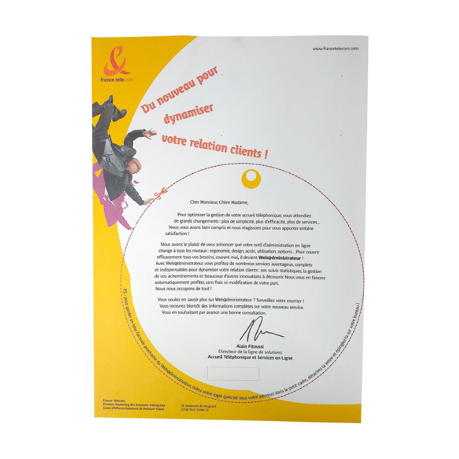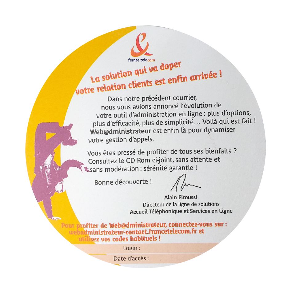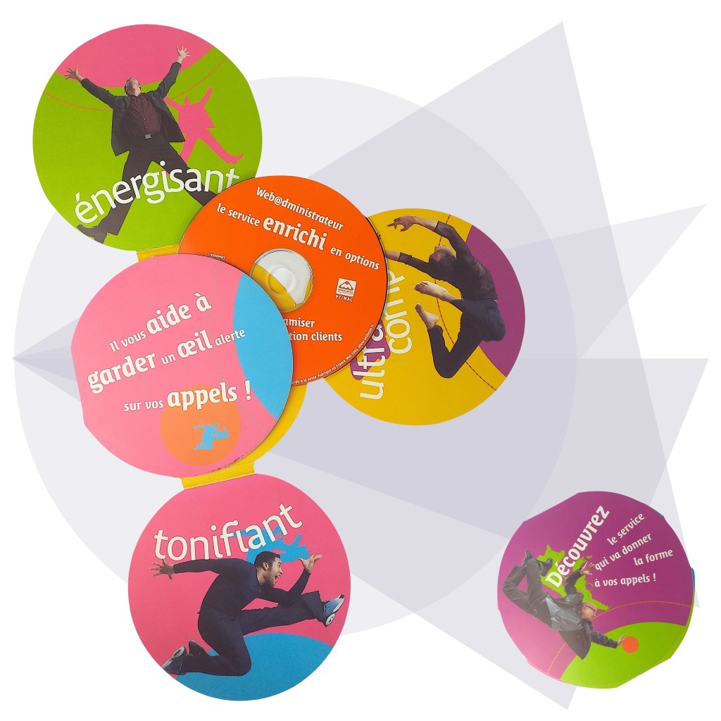Dynamisme insufflé par le cercle, 3 courriers chacun destiné à une cible identifiée suivi de l’envoi d’un mailing constitué d’un dépliant de forme ronde dont les plis croisés découvrent un CD Rom, conception du story board pour les animations en Flash du CD Rom avec renvoi sur le site dédié aux professionnels.