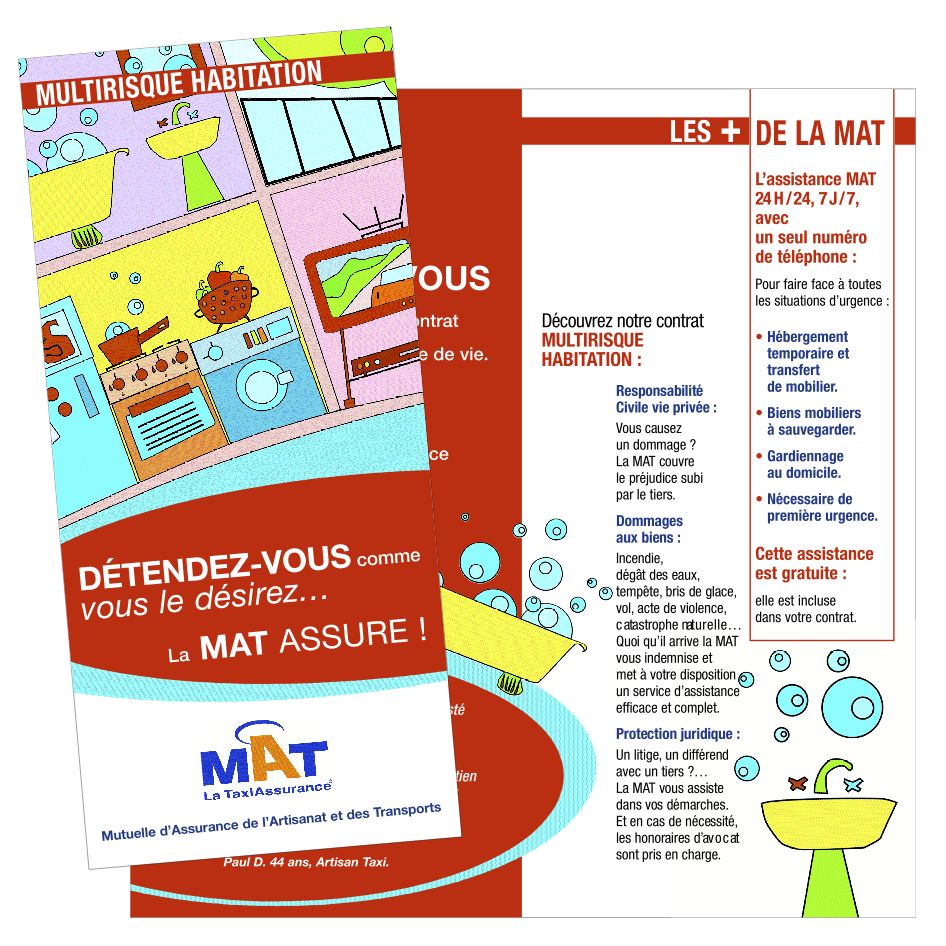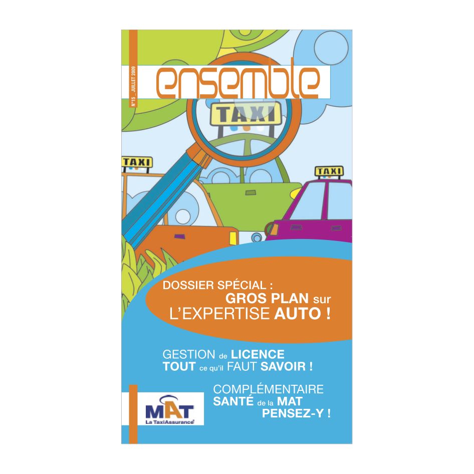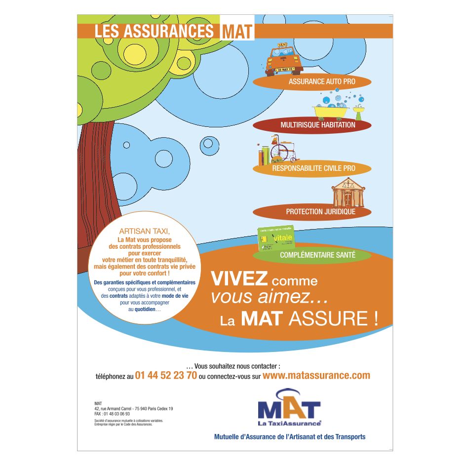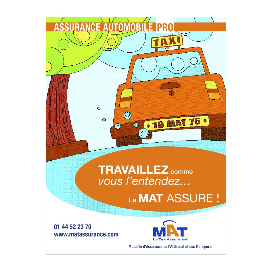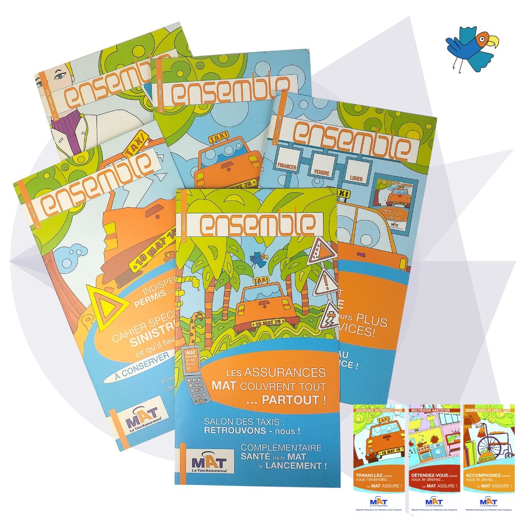 Une gamme d’affiches déclinées en dépliants produits, des illustrations et pictogrammes vivement colorés se sont imposés contrastant avec l’univers quotidien de ses clients et prospects, les chauffeurs de taxi, l‘ensemble uni grâce à un ton clair et réconfortant. Et pour animer cette proximité, une collaboration de 3 ans pour un journal trimestriel abondant de conseils ainsi que de nombreuses annonces presse véhiculées dans des magazines professionnels.